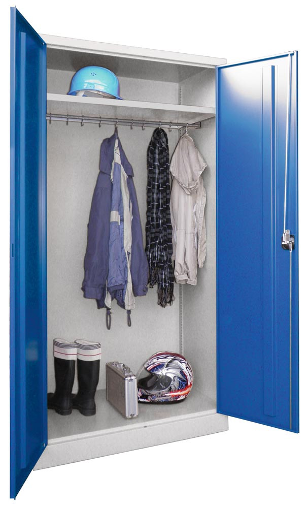 Garderobenschrank, durchg. beschichteter Hutboden, darunter Stange mit 10 Haken, Zyl.-Schl., BxTxH 1000x500x1950 mm, RAL 5010 E1572780