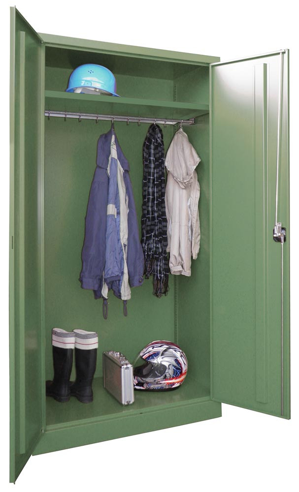 Garderobenschrank, durchg. beschichteter Hutboden, darunter Stange mit 10 Haken, Zyl.-Schl., BxTxH 1000x500x1950 mm, RAL 5015 E1575441