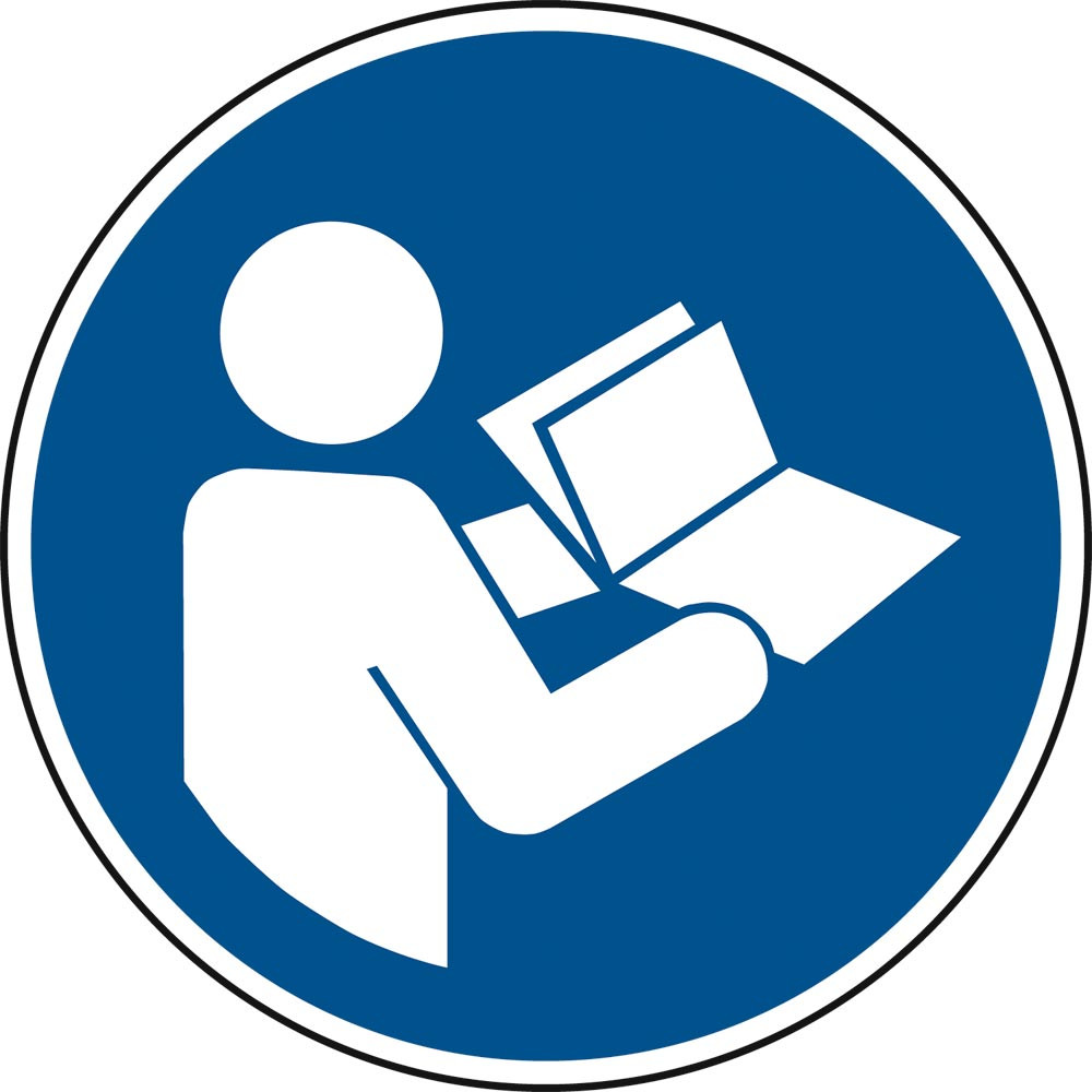 Gebotsschild, Anleitung beachten, Kunststoff, Durchm. 200 mm
