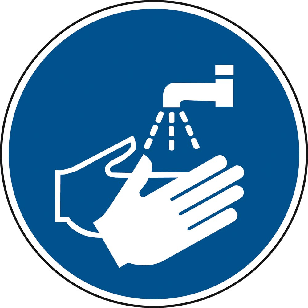 Gebotsschild, Hände waschen, Folie, Durchm. 100 mm, DIN EN ISO 7010