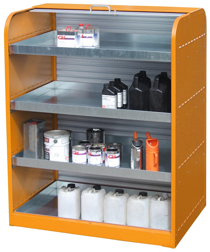 Gefahrstoff-Depot für Gebinde, BxTxH 1300x870x1610 mm, 4 Wannen a 45 l Volumen, RAL 2000