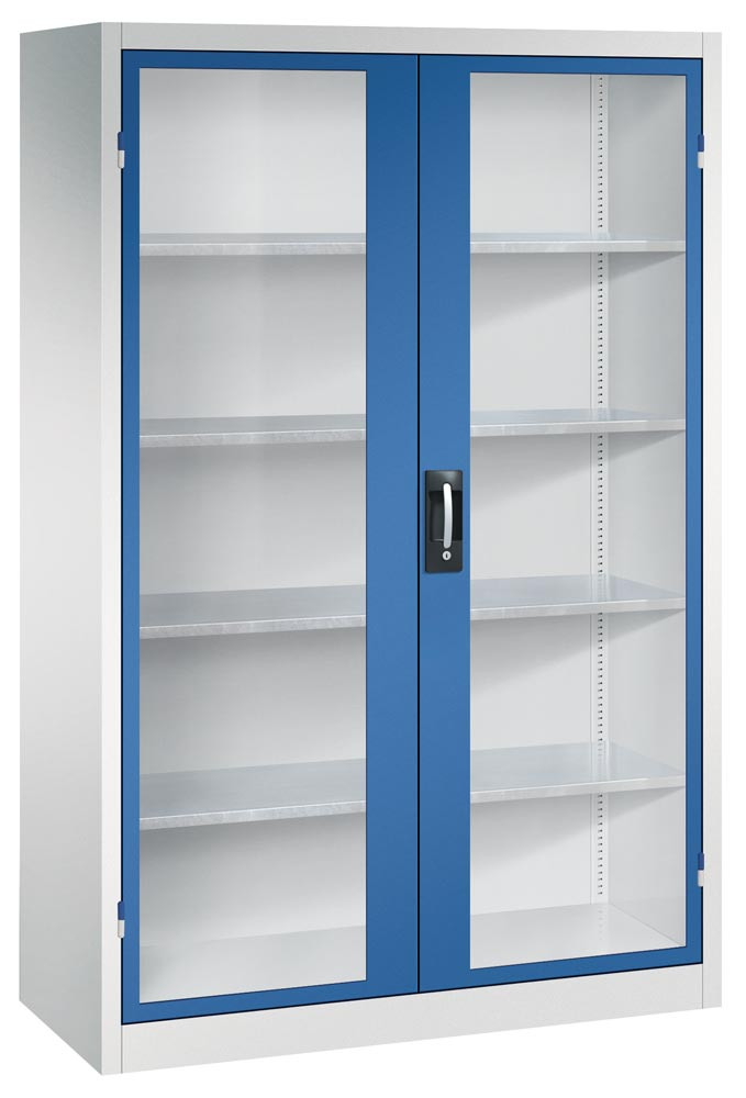 Großraum-Werkzeugschrank mit Sichtfenstertüren, 4 Verstellböden, BxTxH 930x600x1950 mm, RAL 7035/5010 E1985096