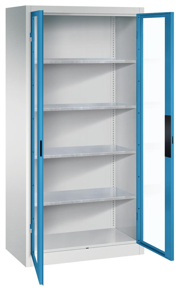 Großraum-Werkzeugschrank mit Sichtfenstertüren, 4 Verstellböden, BxTxH 930x600x1950 mm, RAL 7035/5010 E1985096