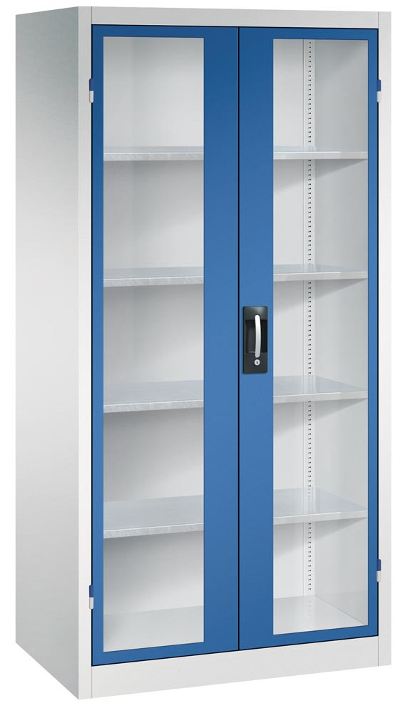 Großraum-Werkzeugschrank mit Sichtfenstertüren, 4 Verstellböden, BxTxH 930x600x1950 mm, RAL 7035/5010 E1985096