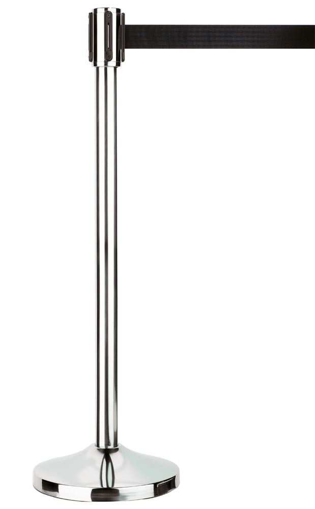 ∙ Flexible Absperrung für unterschiedliche Anwendungen, z. B. in Banken, Museen, Hotels, Theater ∙ Zeitloses Design in stabiler Ausführung mit schwerem Sockelfuß ∙ 3 -fache Einhängemöglichkeit der Absperrgurte ∙ Gurte in 2 Farben (schwarz oder rot) erhältlich ∙ Gurtbreite 50 mm ∙ Max. Gurtauszugslänge 3000 mm ∙ Empfohlene Gurtauszugslänge 2800 mm ∙ Automatische Gurtaufwicklung ∙ Oberflächenausführungen: Chrom und Edelstahl gebürstet ∙ Ständerhöhe 1000 mm ∙ Gewicht 12,50 kg