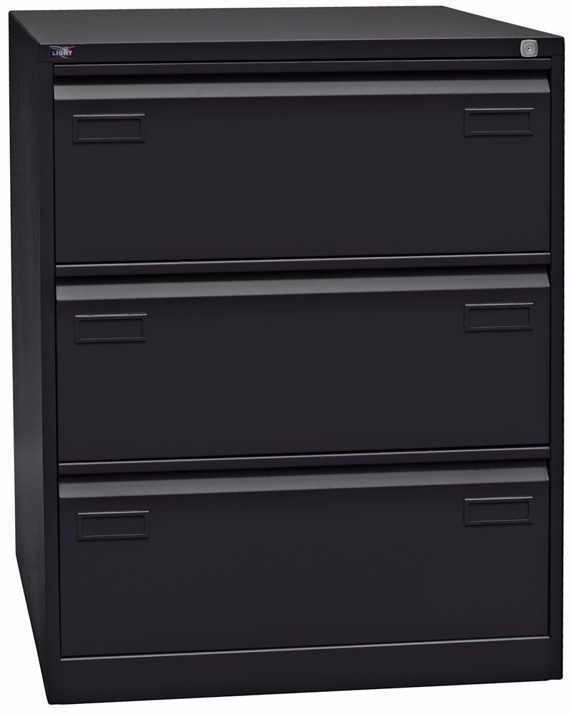 Hängeregistraturschrank LIGHT, BxTxH 800x622x1016 mm, doppelbahnig, 3 Schubladen, Griffleiste, schwarz