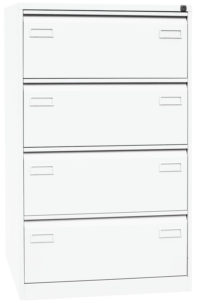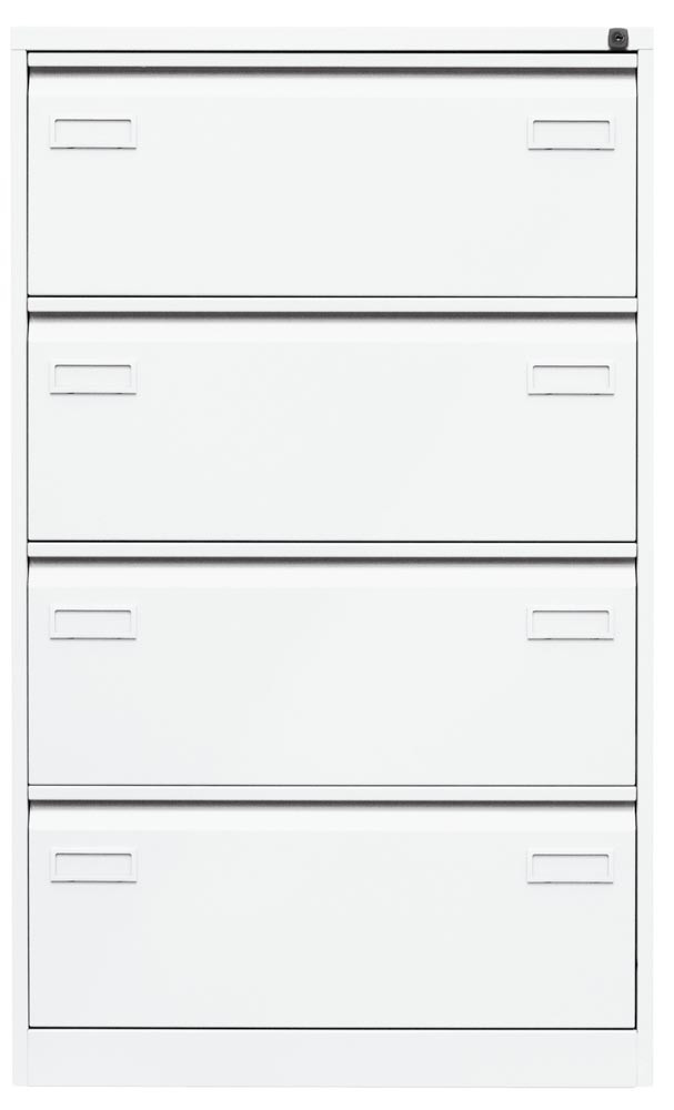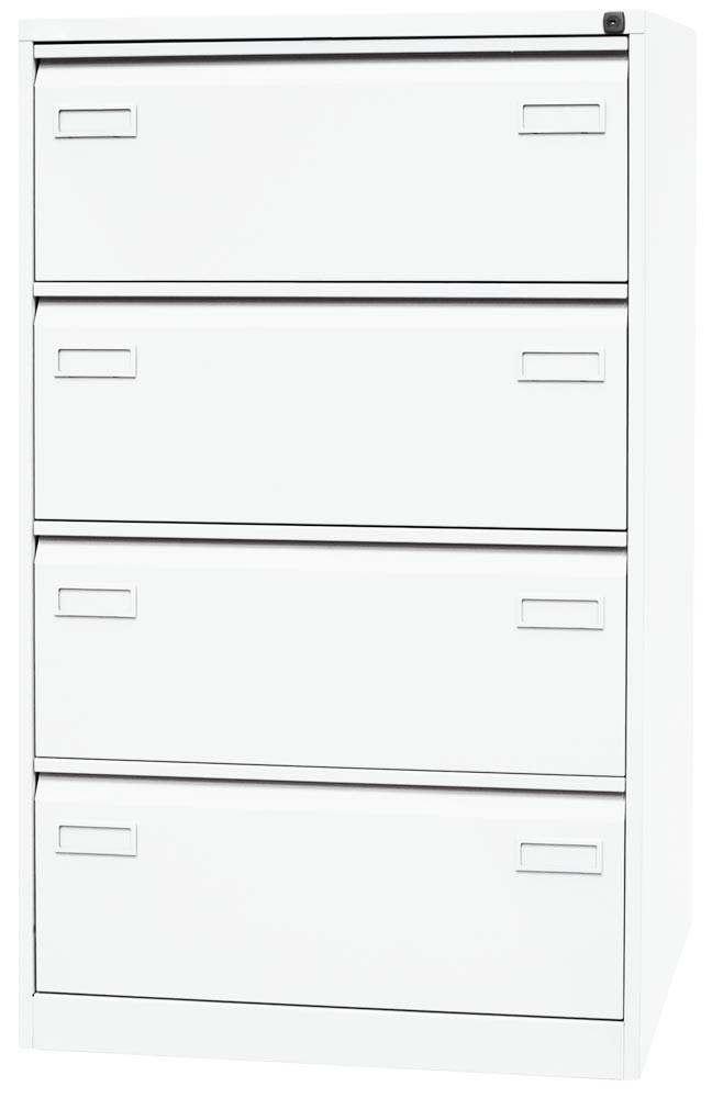 Hängeregistraturschrank LIGHT, BxTxH 800x622x1321 mm, doppelbahnig, 4 Schubladen, Griffleiste, verkehrsweiß