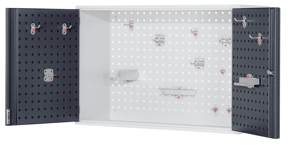 Hängeschrank, Rückwand mit Lochplatten, Türinnenseiten mit Schlitzpl., BxTxH 920x335x620 mm, RAL 7035 E849996