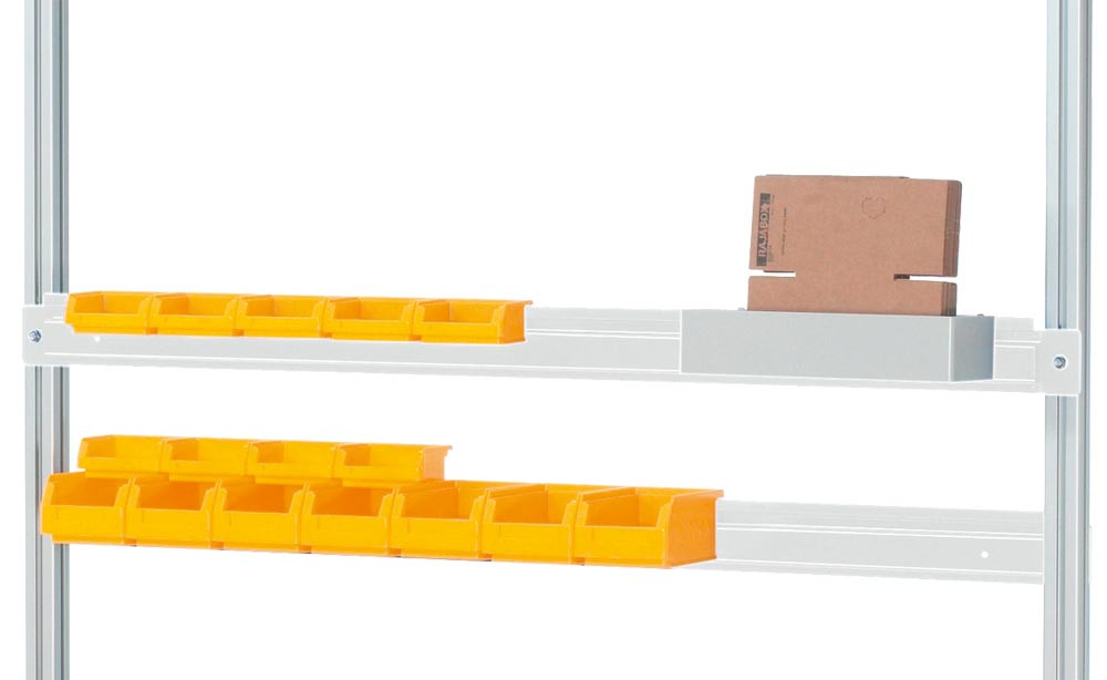 Halteschiene für Sichtlagerkästen, B 2000 mm, max. Belastung 30 kg, RAL 7035 E6490891
