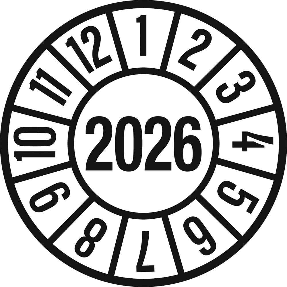 Hinweisschild, Plakette, weiß, Jahr 2026, PVC-Folie, Durchm. 35 mm, VE 10 Stück, Mindestabnahme 10 VE E6472254