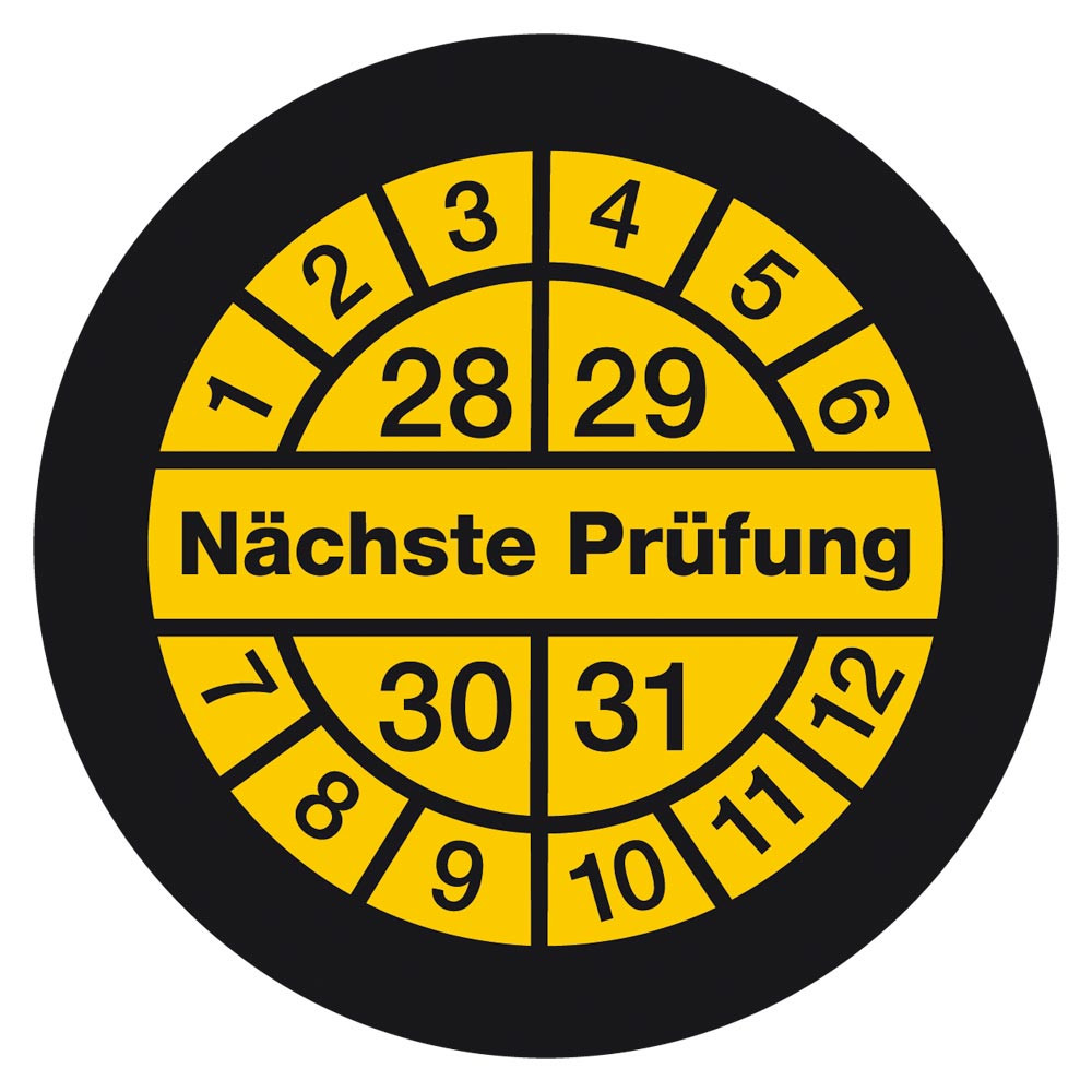 Hinweisschild, nächste Prüfung 2028, PVC-Folie, gelb, Durchm. 12,5 mm, VE 10 Stück, Mindestabnahme 10 VE