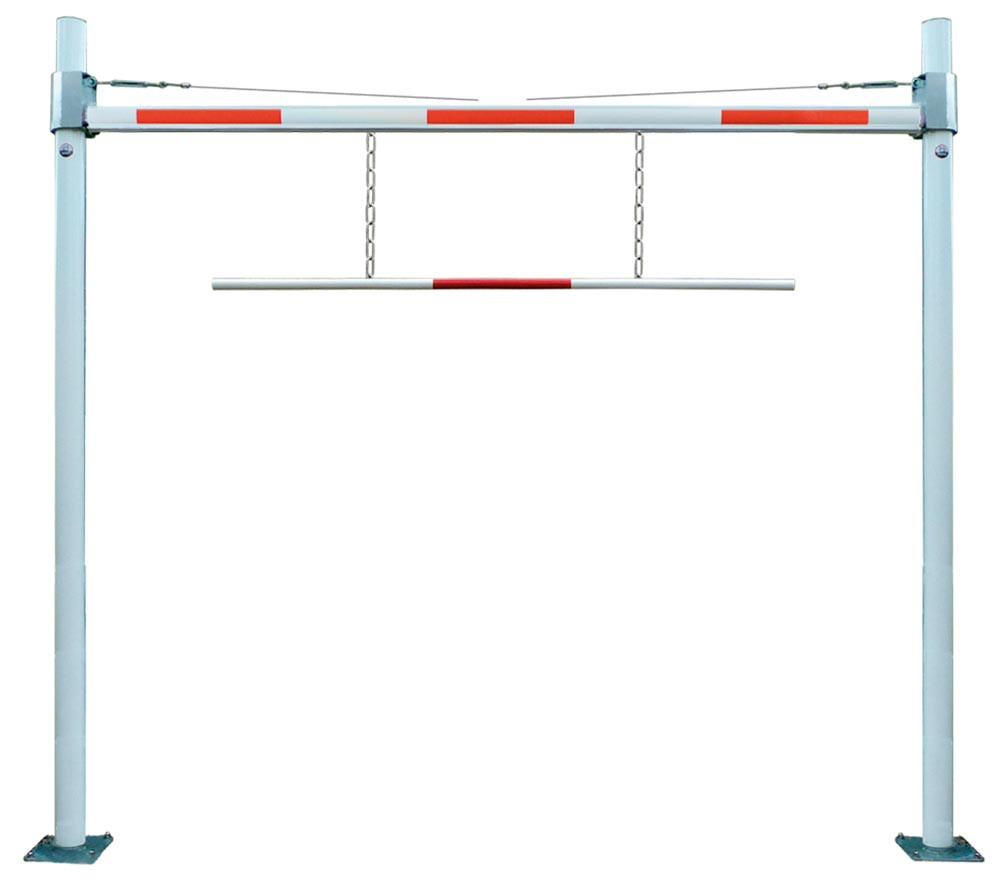 Höhenbegrenzer starr, Sperrweite 5 m, m.Verstellb. Durchfahrtshöhe bis 3,8 m, Stützen verzinkt 101,6x2,9 mm, Sperrbalken Alu 86x46 mm