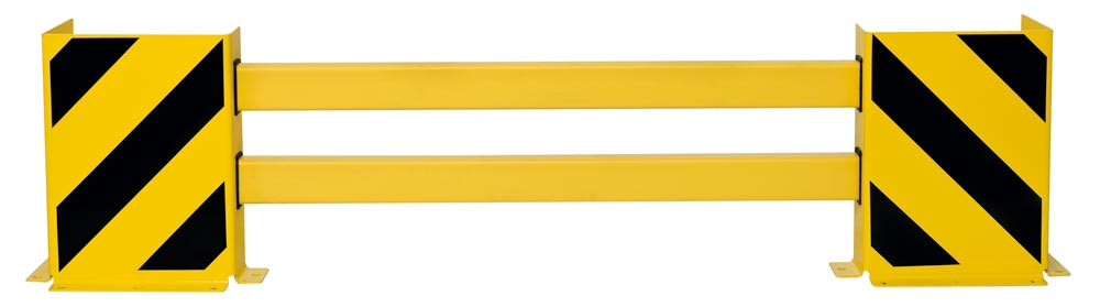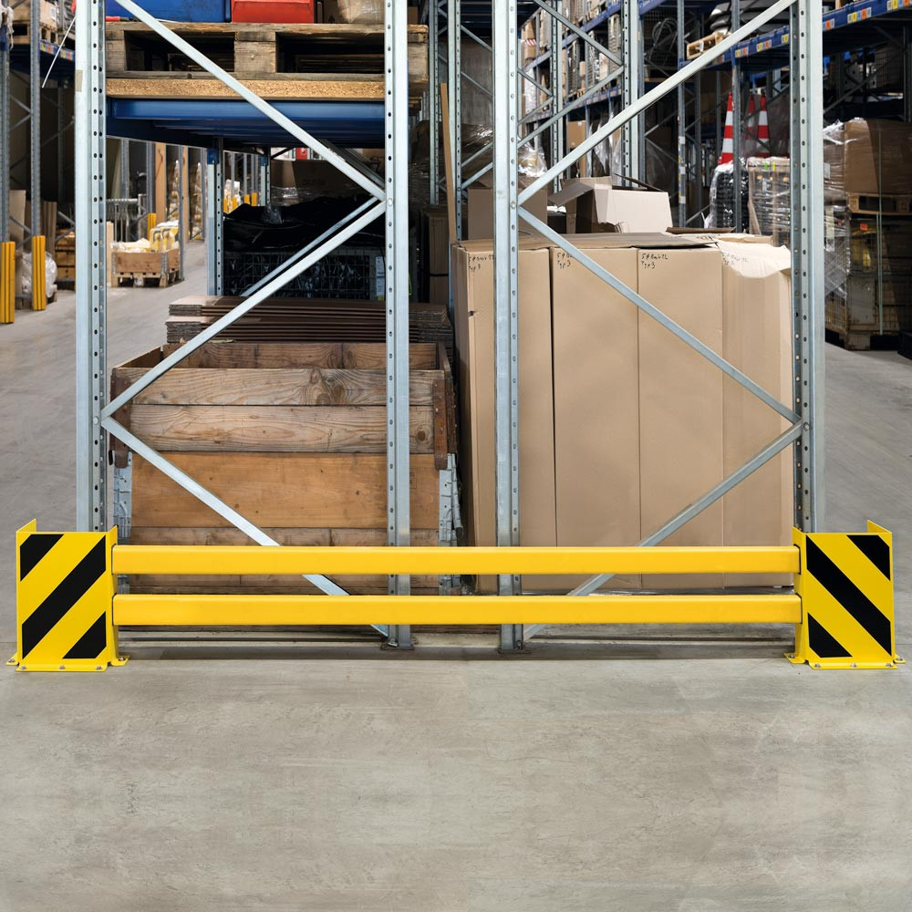Hybrid-Regalschutz-Planken-Set, für Doppelregalreihe, Innenbereich, einstellbar von 1700-2100 mm, beschichtet in gelb, mit schwarzen Streifen