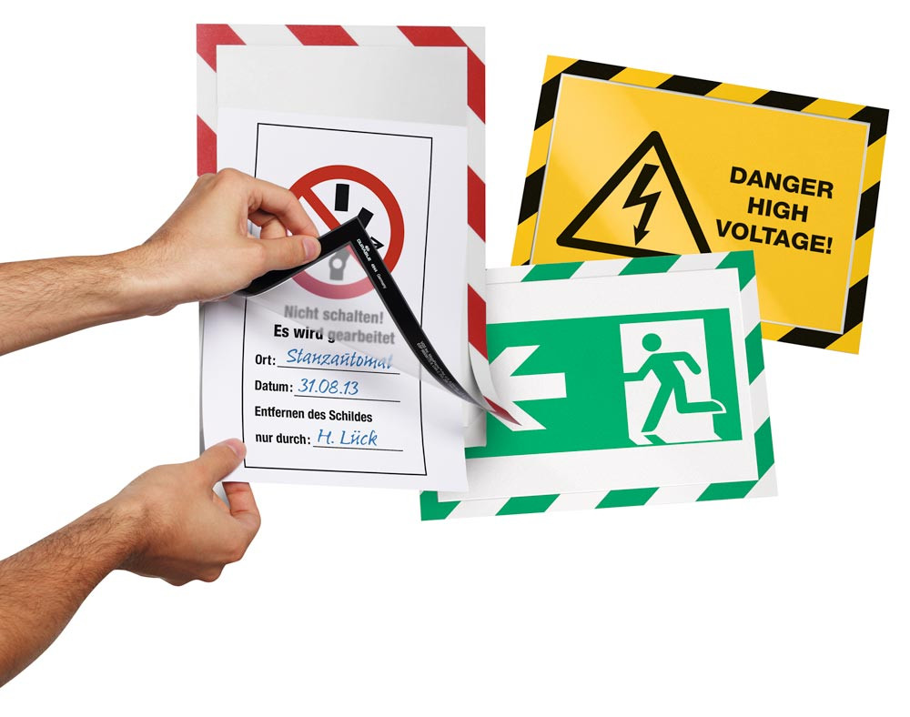 Farbiger Rahmen ideal zur Aufnahme von Betriebsanweisungen in Lager und Betrieb