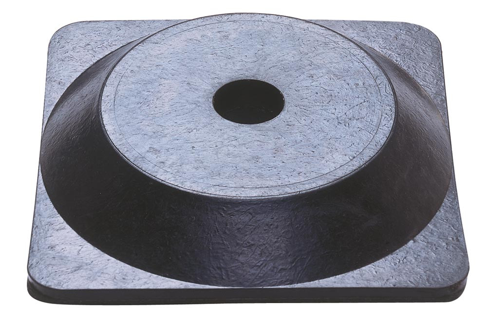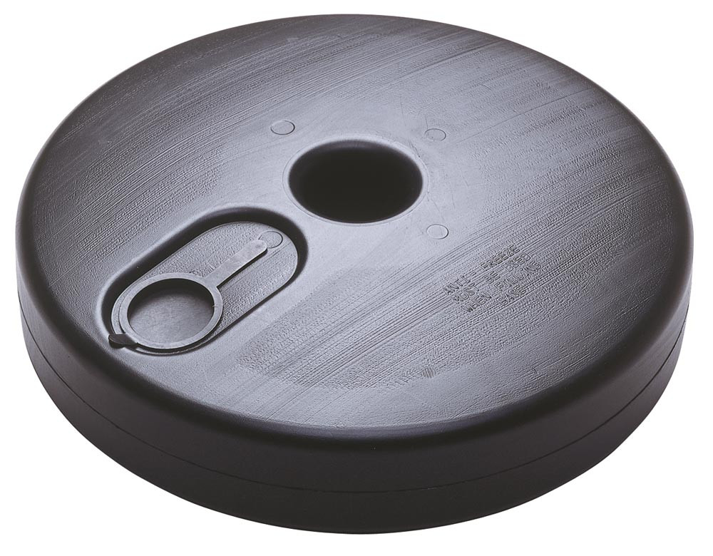 Ketten-Sperrpfosten, Hartgummifuß viereckig 1,8 kg, Pfosten aus Kunststoff schwarz-gelb, 870 mm hoch, Durchm. 40 mm E842054