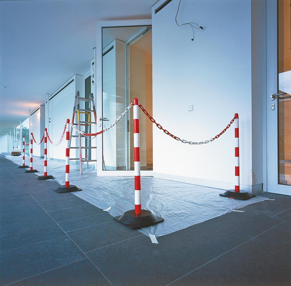 ∙ Für einfaches und schnelles mobiles Absperren in Lager, Produktion oder Verwaltung ∙ Für Innen- und zeitweisen Außeneinsatz ∙ Pfosten aus Kunststoff ∙ Vier Ösen zum Einhängen einer Kette