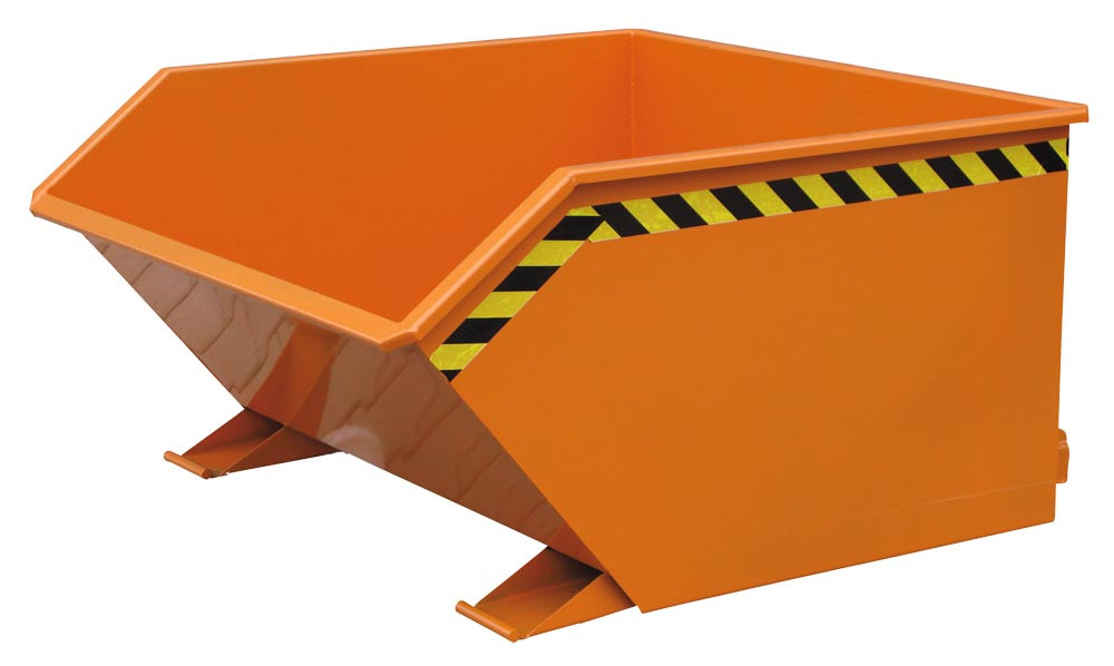 Kippbehälter in niedriger Bauhöhe, LxBxH 1410x700x580 mm, 1000 kg, 300 Liter, reinorange