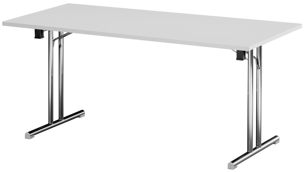 Klapptisch, BxTxH 1400x700x720 mm, T-Fuß-Gestell verchromt, gerade Kufen, melaminharzbesch. Platte lichtgrau