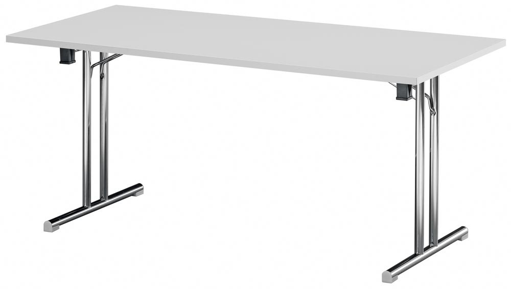 Klapptisch, BxTxH 1600x700x720 mm, T-Fuß-Gestell verchromt, gerade Kufen, melaminharzbesch. Platte lichtgrau
