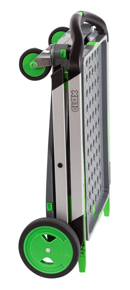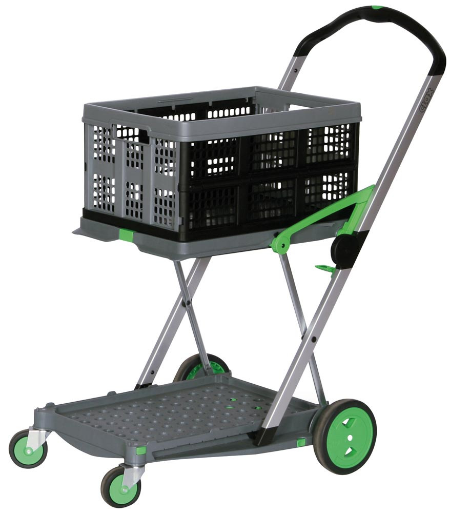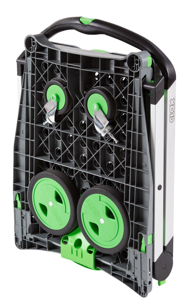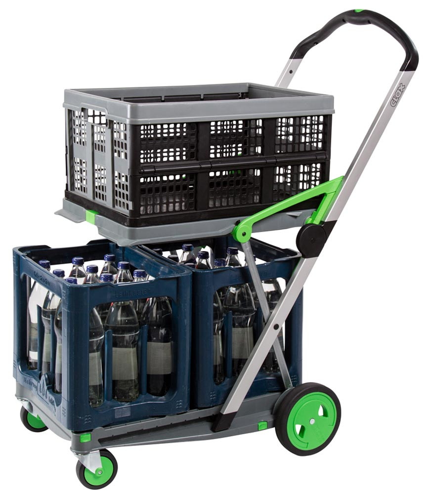 ∙ Vielseitiger Klappwagen aus Aluminium und hochwertigem Kunststoff ∙ Der obere Boden zum Hochklappen schafft Platz für sperrige Dinge ∙ Inkl. 1 Faltbox - Befestigung über Gummizüge am Klappwagen ∙ Zusammenfalten des Wagens in Sekundenschnelle durch eine Drucktaste am Griffbügel ∙ Zum platzsparenden Verstauen lassen sich die Räder abnehmen und am unteren Boden befestigen ∙ Integrierte Feststellbremse verhindert ein versehentliches Wegrollen
