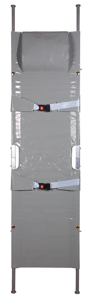 Nach DIN 13024 ∙ Robuste, nahtlose Aluminium-Vierkantprofile mit verriegelbaren Stahlgelenken ∙ Strapazierfähiger Chemiefaserbezug ∙ Sehr pflegeleicht und desinfizierbar ∙ Sicherungsgurte mit Schnellverschlüssen, Kopfkissentasche, 4 Gleitfüße