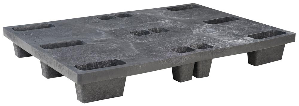 Kunststoffpalette, PE-RE, schwarz, Oberdeck offen, ohne Rand, 9 Füße, BxTxH 1000x1200x145 mm, Traglast kg stat/dynam/Regal 4000/1200/- E821041