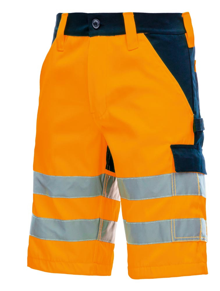 MOTION TEX VIZ, Warnschutz - Hose, kurz, neonorange/marineblau, Gr. 64