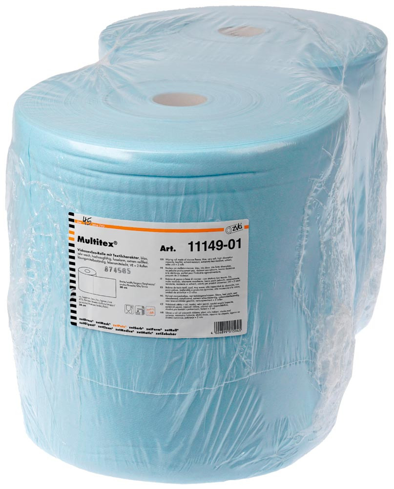Sehr weiche, silikonfreie Wischtücher aus Viskosevlies mit Textilcharakter ∙ Lösemittelbeständig ∙ Extrem geringe Flusenbildung ∙ Hohe Saugfähigkeit; auch nass besonders reißfest ∙ Bei 90 °C waschbar ∙ Rollenbreite ca. 30 cm, ca. 475 Abrisse à 38 cm ∙ Verpackungseinheit 2 Rollen
