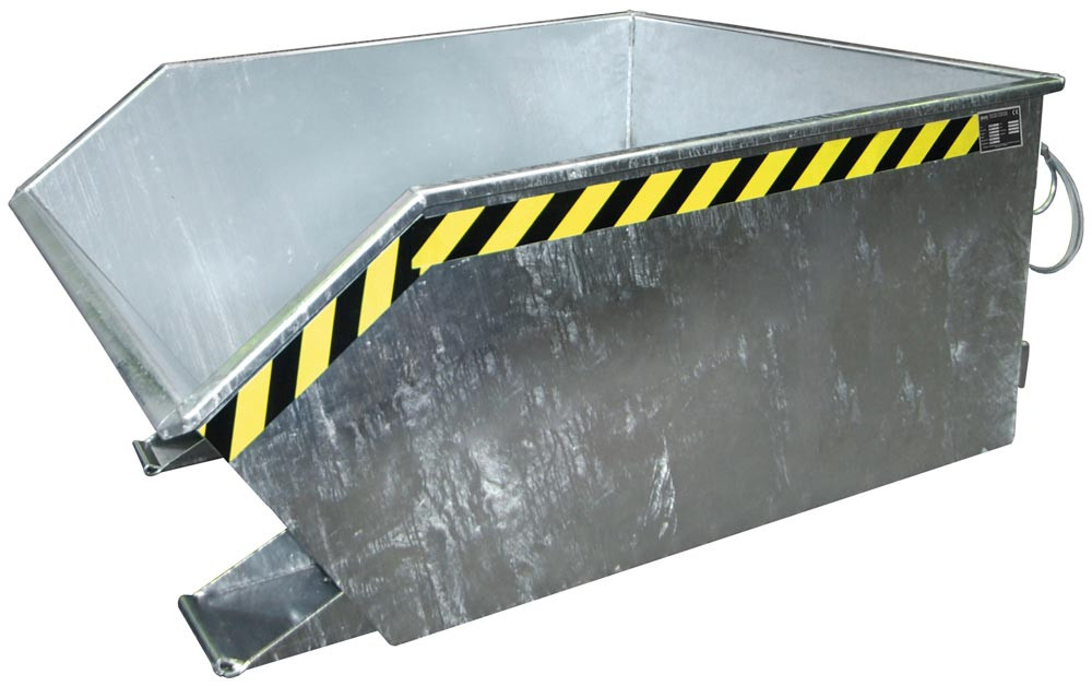 Mulden-Selbstkippbehälter, automatischer Aufrichter, Traglast 1000 kg, LxBxH 1440x780x680 mm, Vol. 0,50 cbm, verzinkt