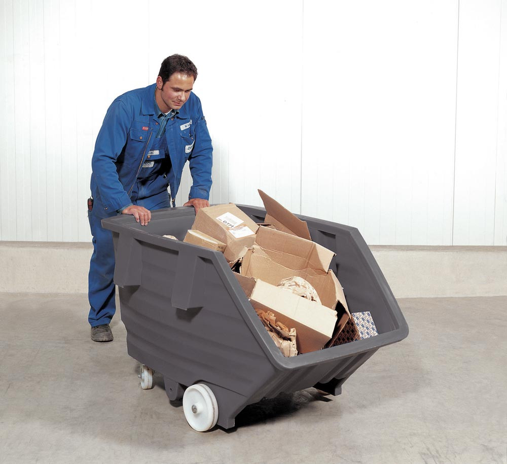 Muldenkippbehälter aus PE, Vol. 0,5 cbm, LxBxH 1440x960x825 mm, Traglast 150 kg, mit Radsatz, Farbe grau E871783