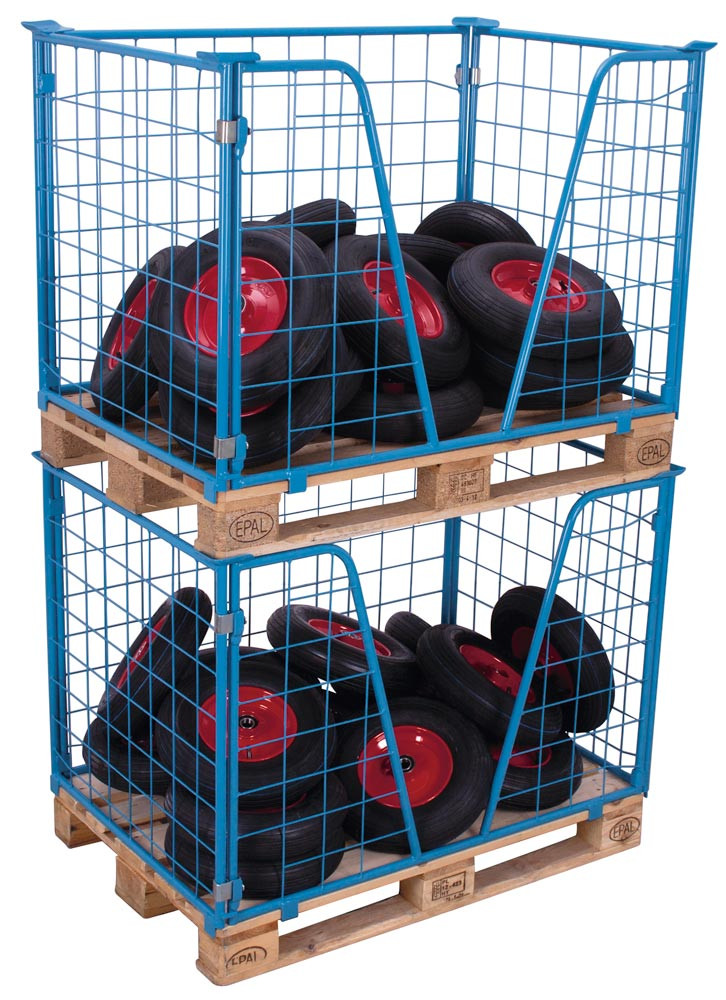 ∙ Stapelbar ∙ Für die optimale Nutzung der Palettenoberfläche ∙ Schnell montiert und bei Nichtgebrauch platzsparend gelagert ∙ Stabile Stahlkonstruktion mit senkrechten Streben aus geschweißtem Stahl für höchste Beanspruchungen ∙ Farbe RAL 5012 lichtblau · Auf Anfrage auch in RAL 7016 anthrazitgrau lieferbar
