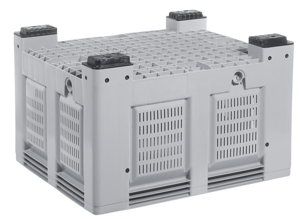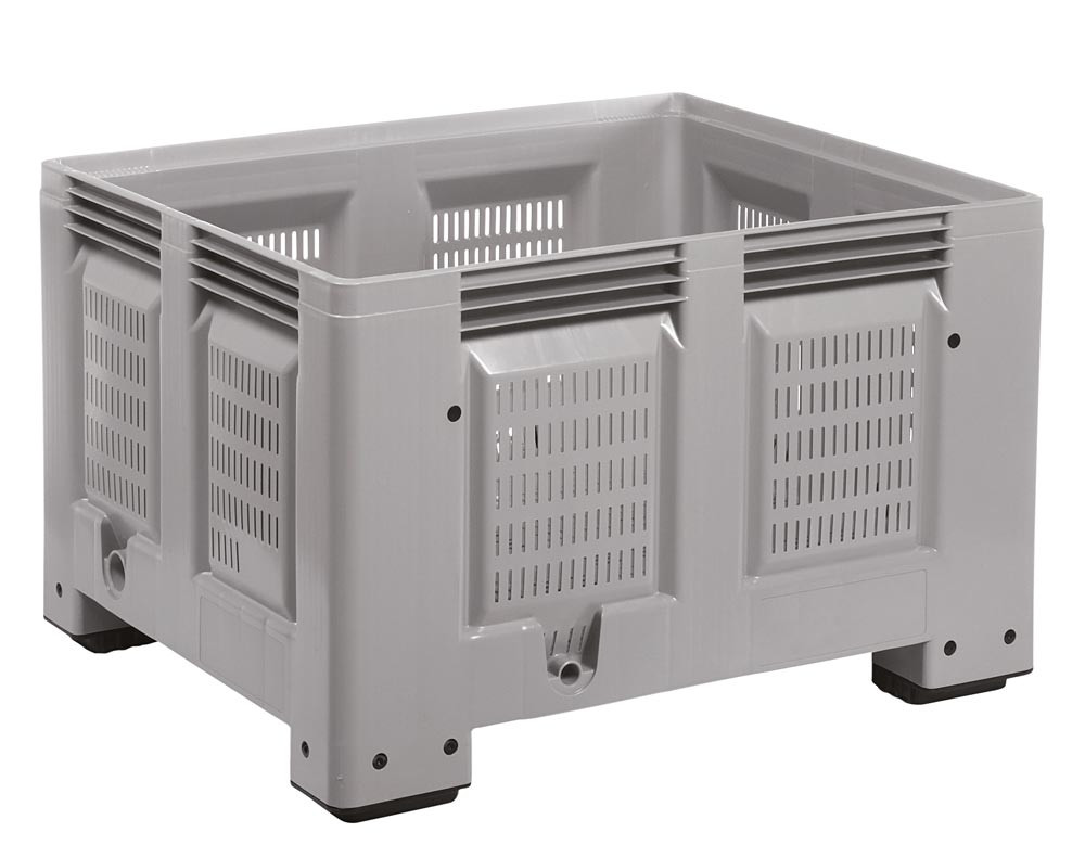 Palettenbox, HDPE, BxTxH 1200x1000x760 mm, Volumen 670 l, Farbe grau, 4 Füße, Boden + Wände durchbrochen