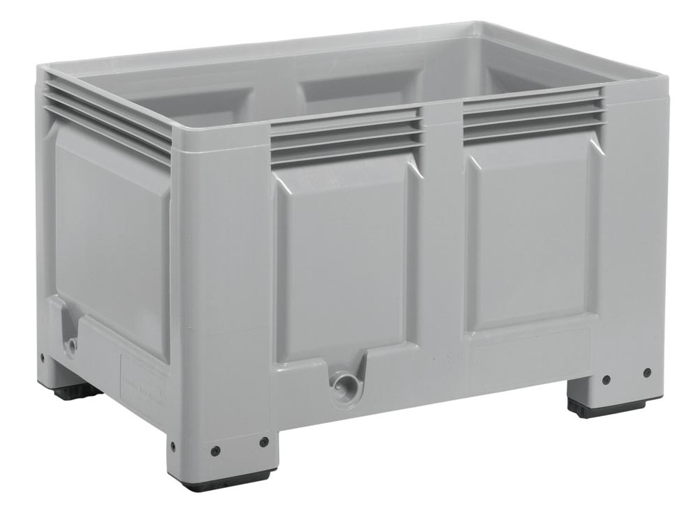 Palettenbox, HDPE, BxTxH 1200x800x760 mm, Volumen 535 l, Farbe grau, 4 Füße, Boden + Wände geschlossen