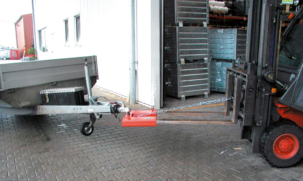 · Zum leichten Verfahren von Anhängern auf dem Betriebsgelände, in Produktionshallen etc. · Stabile Einfahrtaschen für Gabelzinken · Abrutschsicherung · Problemloses Anhängen · Lackierung in RAL 3000 feuerrot