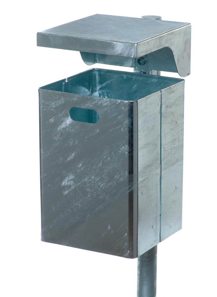 Rechteck-Abfallbehälter mit Abdeckhaube, ca. 40 L, feuerverzinkt, ohne Ascher