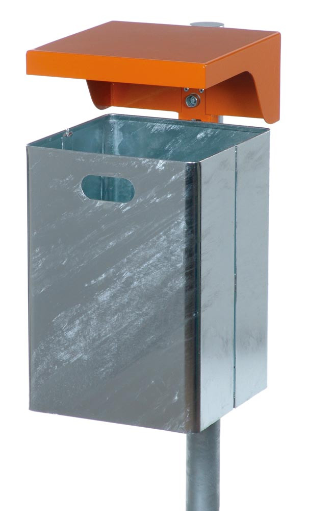 Rechteck-Abfallbehälter mit Abdeckhaube, ca. 40 L, feuerverzinkt sowie Abdeckhaube zus. Pulverbeschichtet, orange, ohne Ascher