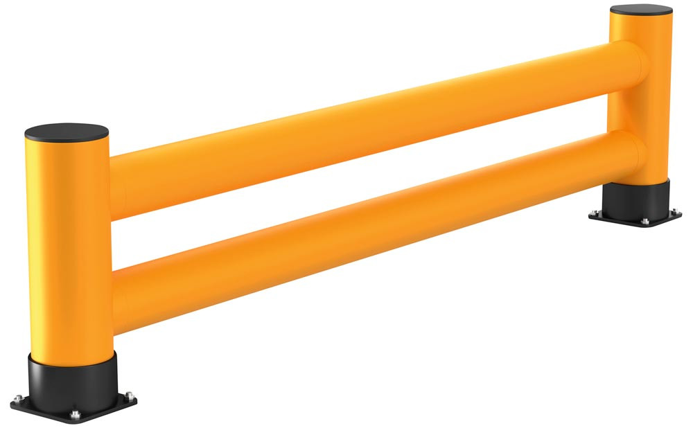 Regalendschutz, Doppelplanke, HDPE, Länge 1200 mm, Höhe 600 mm, Pollerdurchm. 180 mm, Verbindungsrohrdurchm. 140 mm, Farbe gelb E6471518