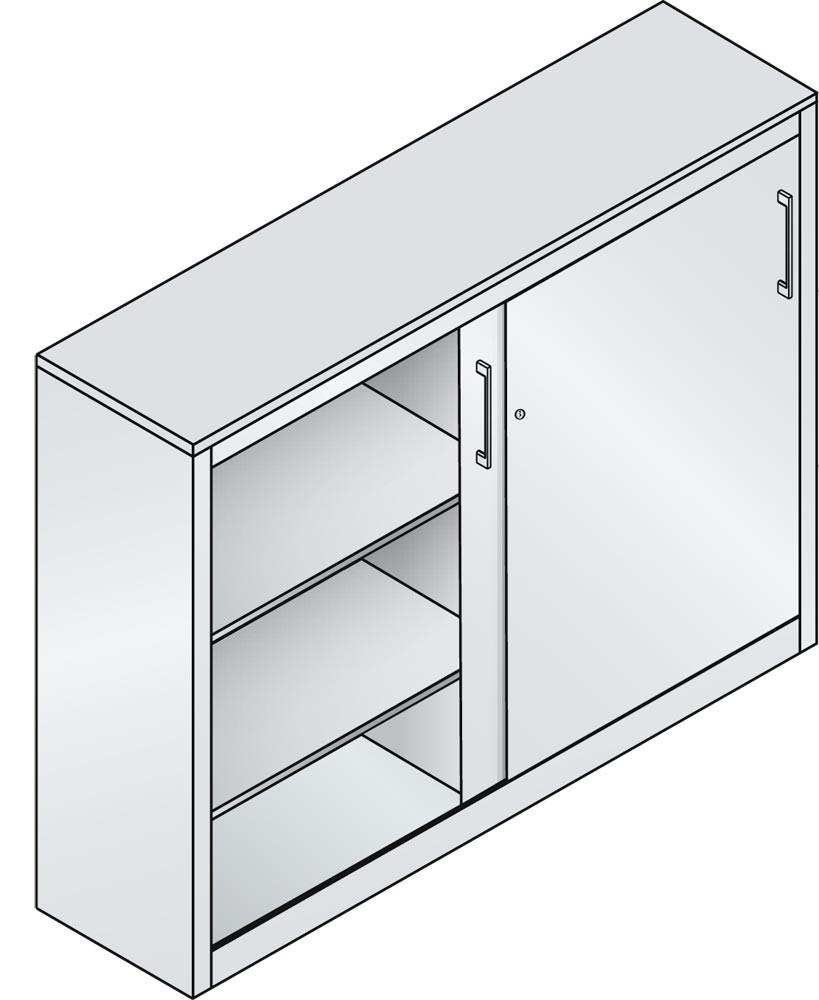 Schiebetürenschrank, BxTxH 1600x400x1225 mm, 3 OH, 2 Böden, Korpus/Türen RAL 7035 lichtgrau