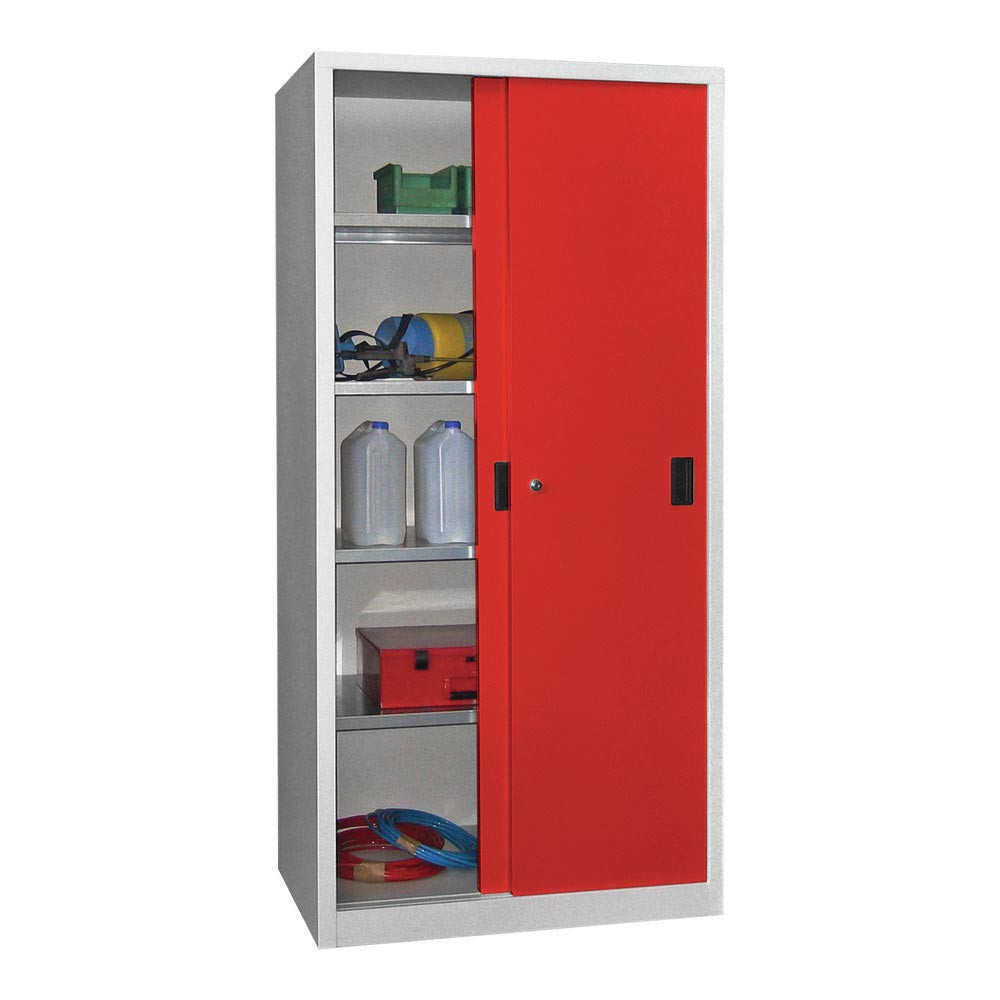 Schiebetürenschrank, Vollblechtüren, 4 verzinkte Böden, ohne Trennwand, BxTxH 1000x400x1950 mm, RAL 7035/3000 E875881