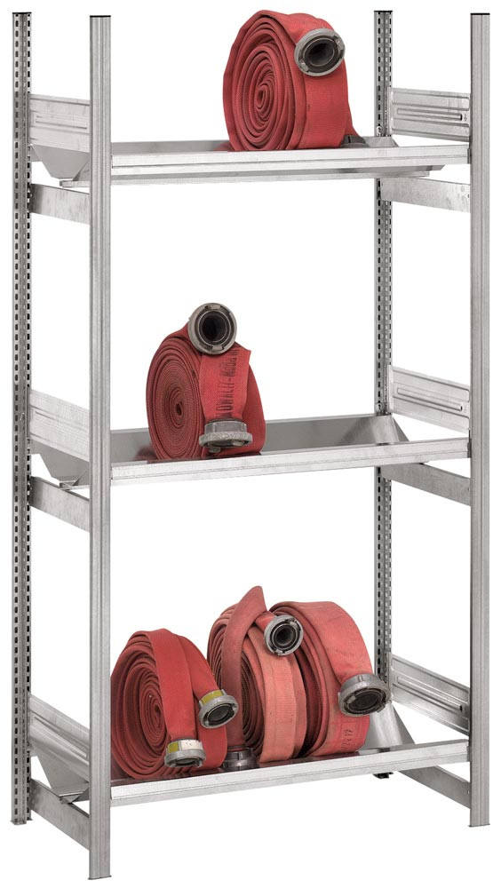 Schlauchregal, feststehend, Anbaufeld, verzinkt, 3 Lagerebenen, BxTxH 1010x535x2000 mm, Fachlast 100 kg, Feldlast 500 kg