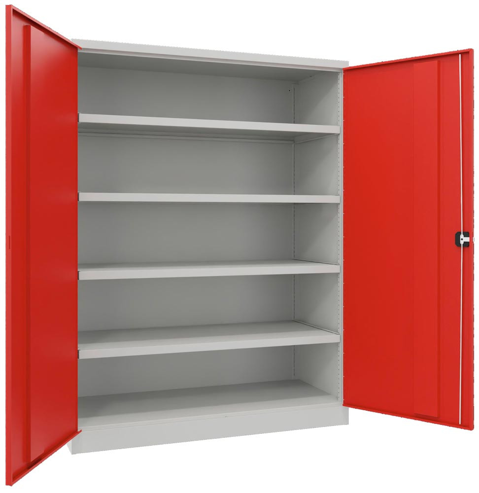 Schwerlastschrank, Vollblechtüren, 4 Böden, 120 kg Traglast, BxTxH 1470x 630x1950 mm, RAL 7035/3000