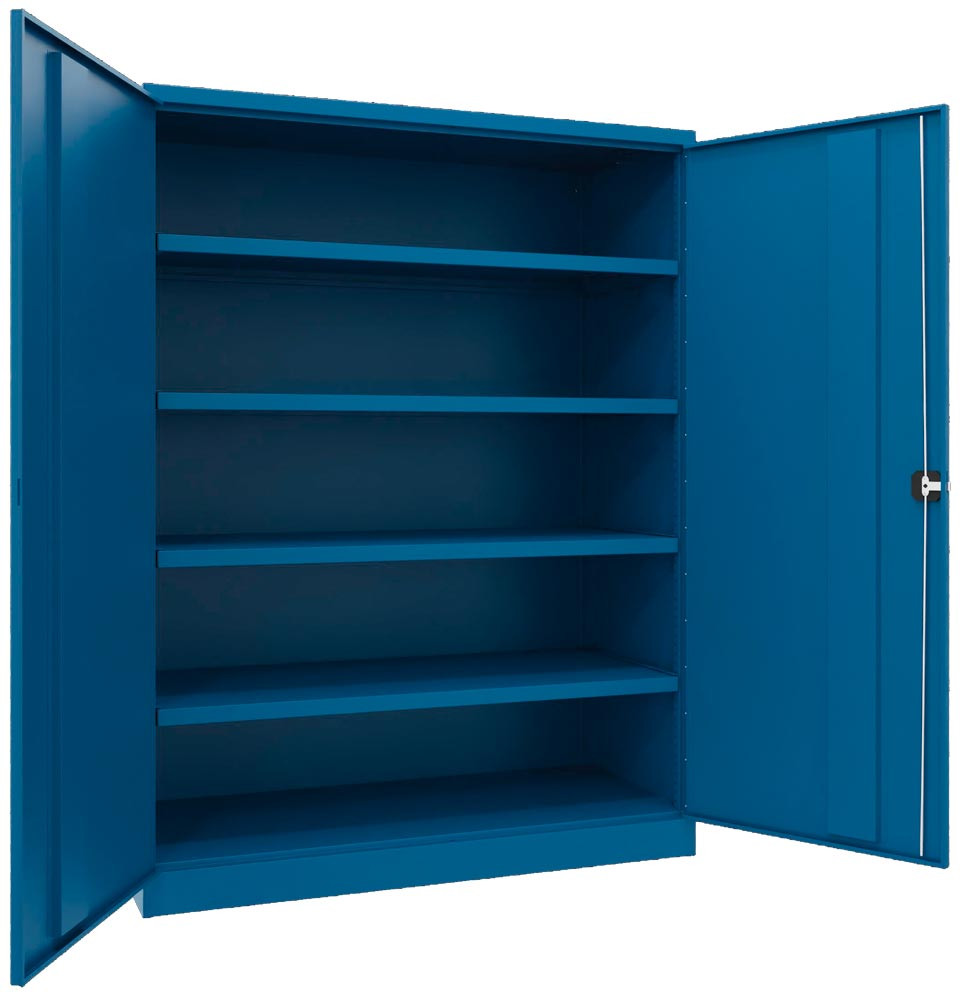 Schwerlastschrank, Vollblechtüren, 4 Böden, 120 kg Traglast, BxTxH 1470x630x1950 mm, RAL 5010 E6490110