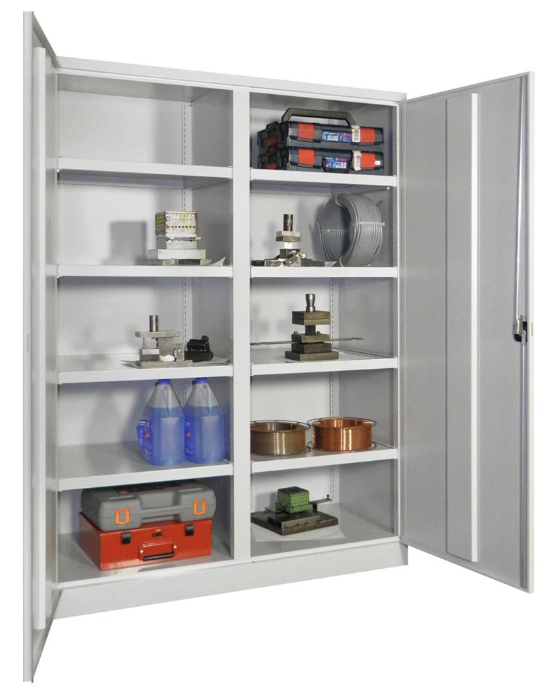 Schwerlastschrank, Vollblechtüren, mit Trennwand, 8 beschichtete Böden, BxTxH 1040x 630x1950 mm, RAL 7035/3000 E1567500