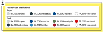 ∙ Weitere Farbkombinationen sind ohne Aufpreis auf Anfrage lieferbar