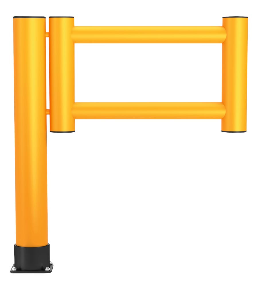 Schwingtür, HDPE, Breite 1000 mm, Höhe 1100 mm, Pollerdurchm. 140 mm, Anschlag links, Farbe gelb