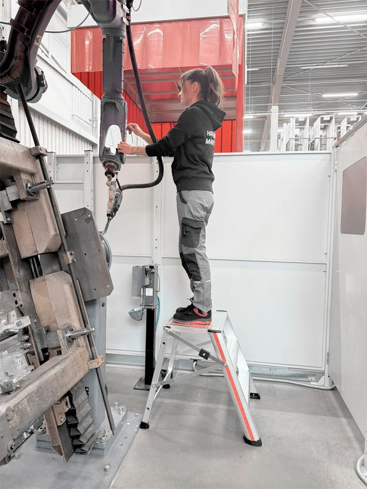 · Stufen-Klapptritte, einseitig begehbar · Hergestellt aus Aluminium · Große Plattform B x T 400 x 500 mm Standfläche · Hohe Verwindungsstabilität dank robustem D-Holm-Konzept · Ergonomischer Griff für einfache Bedienung · Extra große Leiterschuhe für einen sicheren Stand · Leicht zu reinigender, geschlossener Holm