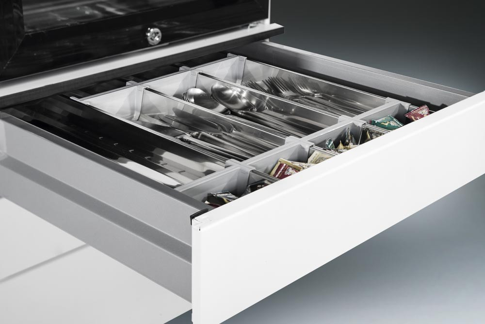 · 2 Schubladen mit variabler Einrichtung für Tassen und Gläser