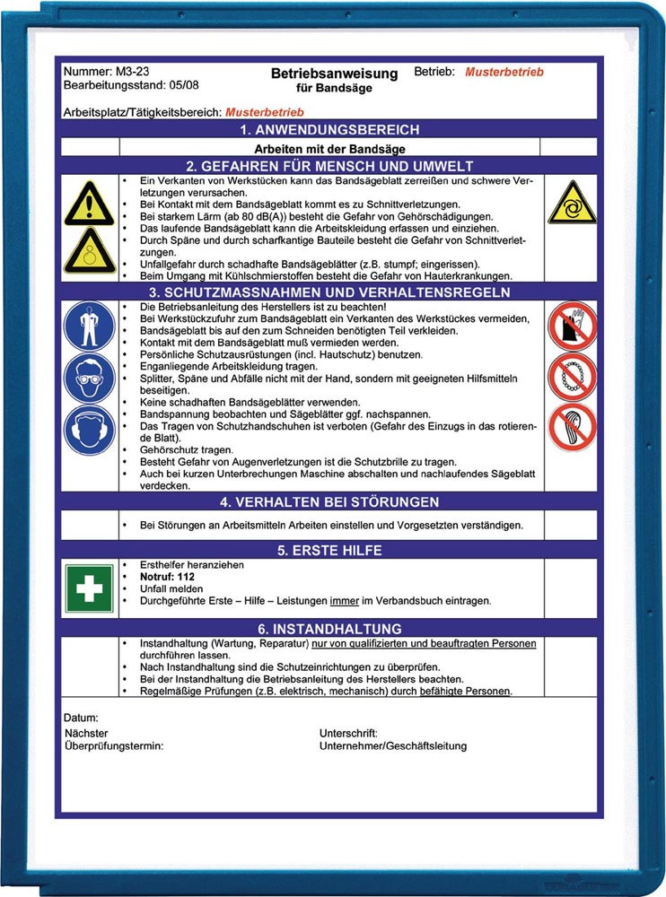 Sichttafeln aus PP, DIN A4, farbiger Rand rot, blanko Einsteckschildchen, Universallochung, VE 5 Stück, Mindestbestellmenge 2 VE