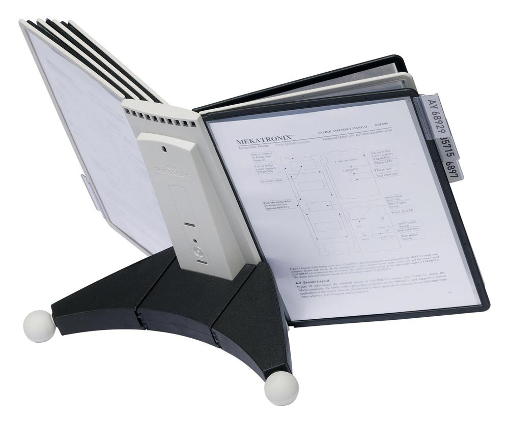 ∙ Hochwertiger Design-Tischständer aus stabilem, schlagfestem Polyamid ∙ Stand- und rutschfest ∙ Inklusive 10 Sichttafeln DIN A4 aus Polypropylen 5 x schwarz und 5 x grau sowie 10 Reitern 58 mm breit
