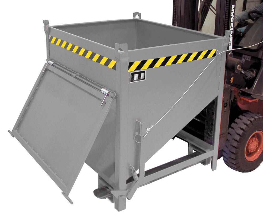 Silobehälter, LxBxH 1000x1200x935 mm, Vol. 0,5 cbm, Traglast 750 kg, stirnseitige Klappe, lackiert RAL 7005 mausgrau E872900
